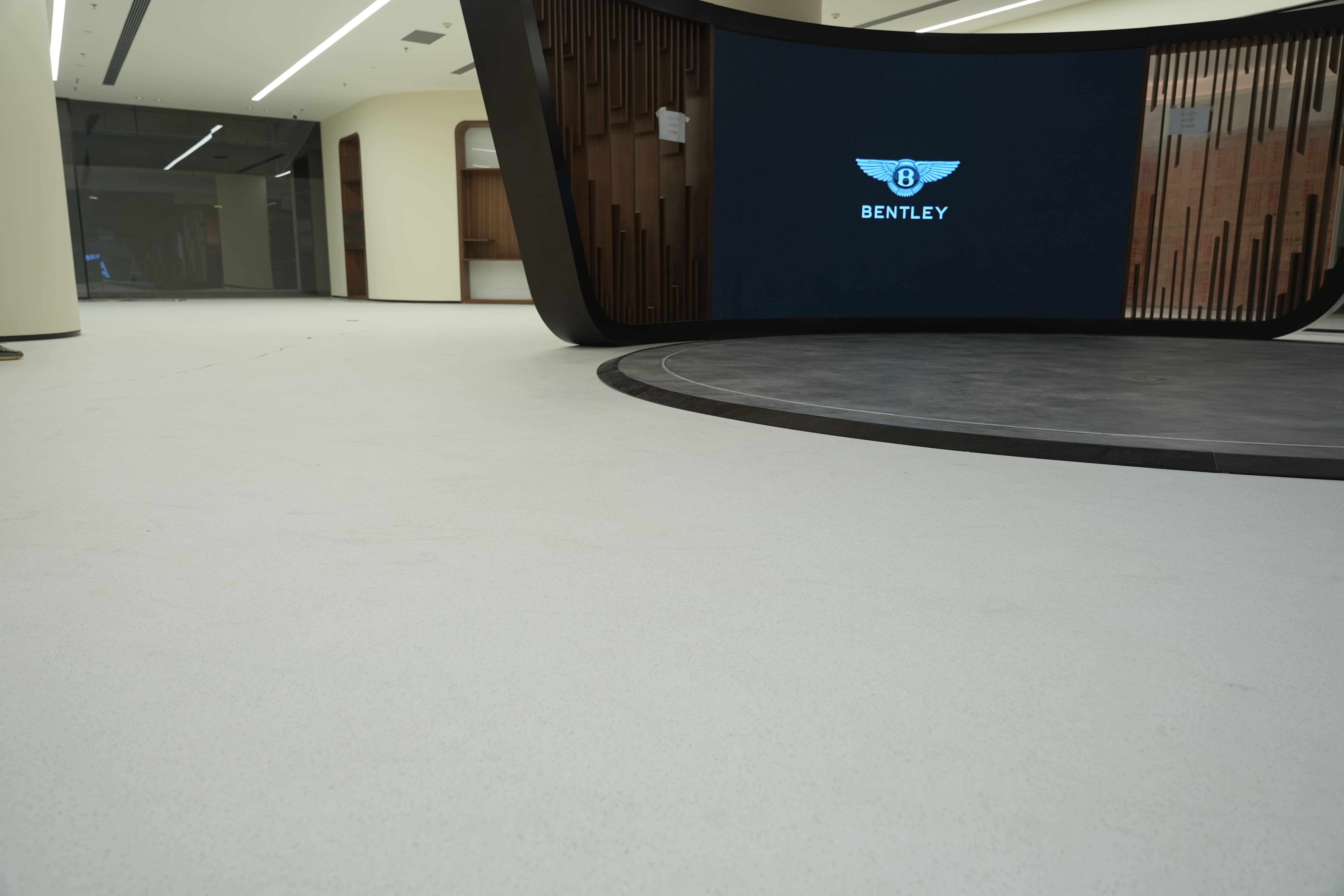 成都宾利是中国西部地区首家宾利全球标准4S旗舰店。宾利成都展厅集奢华、年轻优雅格调于一身。作为世界顶级豪车的展示舞台,展厅地面要求与其品牌形象相匹配,耐迪斯环氧磨石地坪凭借精美的艺术质感、卓越的耐磨耐用性能,以及定制化的高端设计,成功营造出与宾利汽车相得益彰的奢华展示环境。